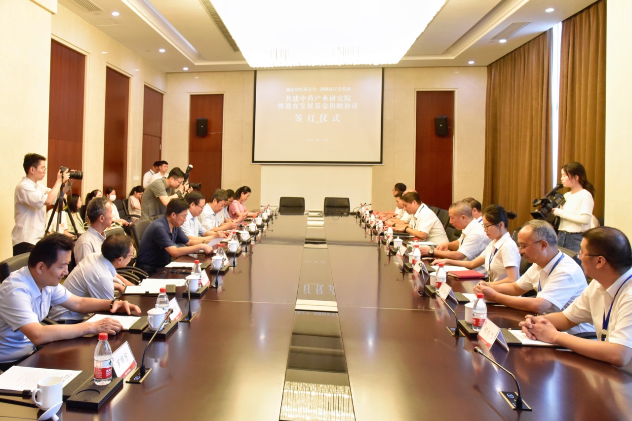 持正堂藥業(yè)董事長(cháng)、總經(jīng)理李清安主持簽約儀式,并作為企業(yè)代表與湖北中醫藥大學(xué)副校長(cháng)、教育發(fā)展基金會(huì )副理事長(cháng)黃必勝簽訂捐贈協(xié)議和“共建中藥產(chǎn)業(yè)研究院”協(xié)議。