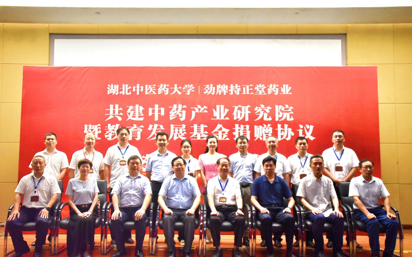 8月11日,勁牌持正堂藥業(yè)有限公司與湖北中醫藥大學(xué)共建中藥產(chǎn)業(yè)研究院暨教育發(fā)展基金捐贈協(xié)議簽訂儀式在勁牌研究院一樓舉行。湖北中醫藥大學(xué)校長(cháng)呂文亮,副校長(cháng)黃必勝,勁牌有限公司董事長(cháng)吳少勛,持正堂藥業(yè)總經(jīng)理李清安等相關(guān)領(lǐng)導出席簽約儀式。