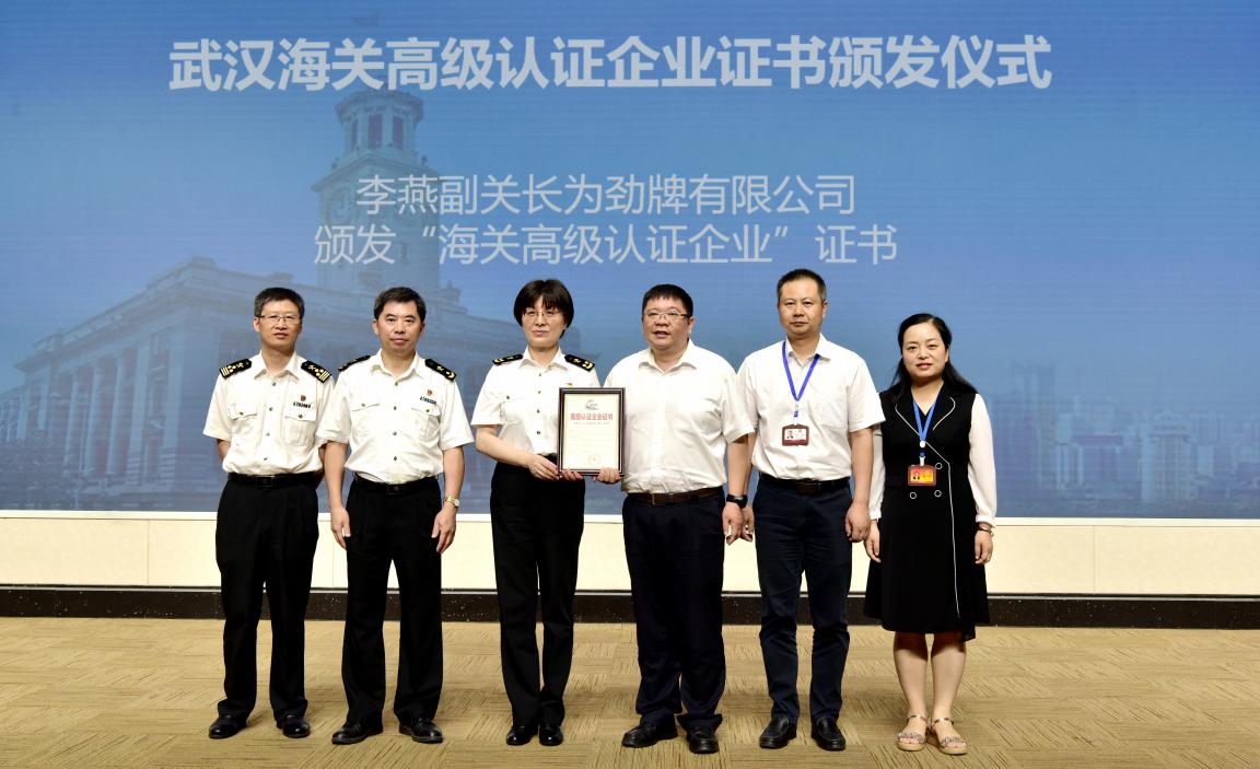 9月2日,武漢海關(guān)副關(guān)長(cháng)李燕在黃石海關(guān)關(guān)長(cháng)馬洪波等領(lǐng)導的陪同下,蒞臨勁牌調研指導工作,并為公司頒發(fā)“海關(guān)高級認證企業(yè)”證書(shū)。勁牌公司總裁王楠波、副總裁李暉予以了熱情接待。